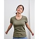 körpernah geschnittenes T-Shirt mit modischem V-Ausschnitt, schmalem Halsbündchen und Nackenband.